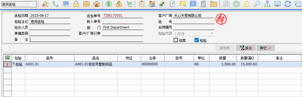 一、要點(diǎn)介紹根據(jù)客戶反饋,國(guó)標(biāo)規(guī)定的允收質(zhì)量水平(AQL)允許輸入向下(↓)或向上(↑)箭頭符號(hào),用以表示樣本等級(jí)的浮動(dòng)方向。這種浮動(dòng)機(jī)制將同步影響樣本等級(jí)和樣本數(shù)量的確定,以及對(duì)應(yīng)的接收數(shù)量和拒收數(shù)量。本次修改需更新至2025年6月13號(hào)之后的A版。 二、正文內(nèi)容************* 1. 營(yíng)業(yè)人資料-其他-特殊檢驗(yàn)?zāi)J竭x擇2、抽檢方案模式或3、不管制。