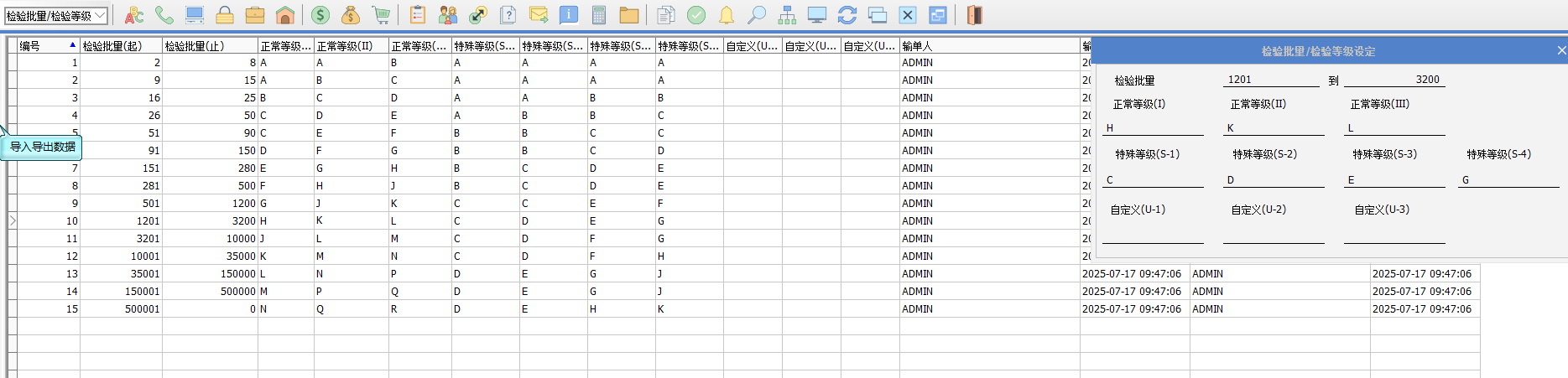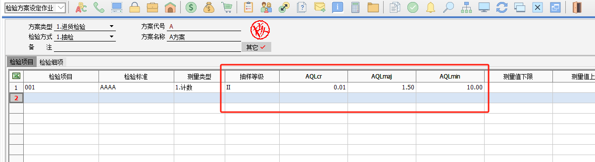 C、檢驗(yàn)方案設(shè)定作業(yè):可根據(jù)自己實(shí)際情況設(shè)定檢驗(yàn)方案,錄入抽樣等級(jí)、AQLcr、AQLmaj、AQLmin等欄位值。