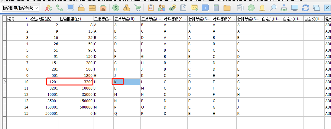 C、根據(jù)驗(yàn)貨數(shù)量1500+抽樣等級(jí)II到【檢驗(yàn)批量/檢驗(yàn)等級(jí)設(shè)定】取到等級(jí)為K。